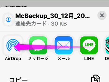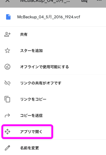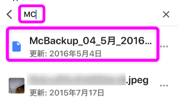 「MC」で検索すると連絡先をバックアップしたデータがヒットするので、これをタップします。