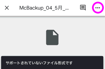 「サポートされていないファイル形式です」と表示されますが、右上の丸で囲った部分をタップします。