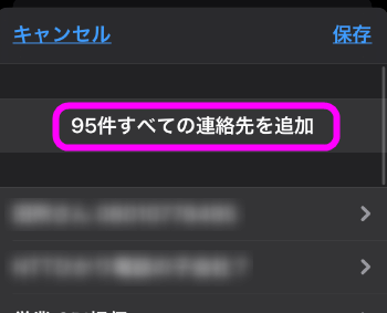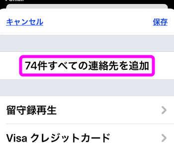 「○○件すべての連作先を追加」をタップすれば、iPhoneの連絡先にデータが取り込まれます。