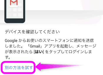 アンドロイドが手元にない場合は、「別の方法を試す」をタップします。