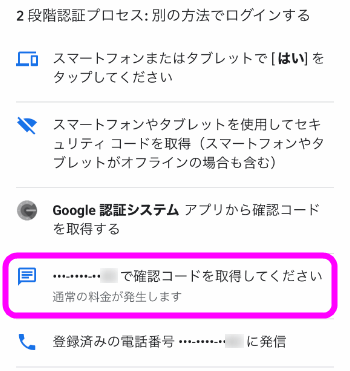 Googleの2段階認証は、SMSによる確認コードでも可能です。