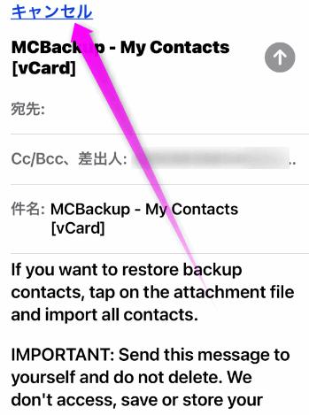 メールのタイトル(件名)は「MCBackup - My Contacts」という名前です。
