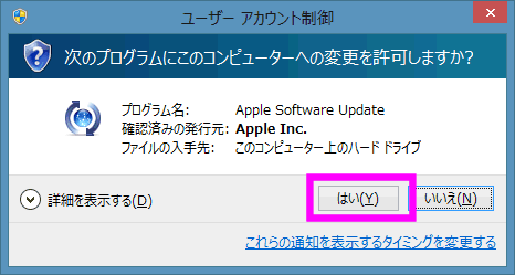 セキュリティー警告が表示されるので「はい」をクリックします。