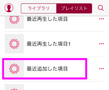 ダウンロードした曲を再生させるには、「プレイリスト」の「最近追加した項目」をタップするとリストに表示されているはずです。
