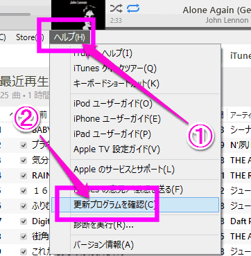 iTunesのヘルプをクリックし、「更新プログラムを確認」をクリックすると、新しいバージョンのiTunesがあるから確認しに行くので、このまま待ちます。