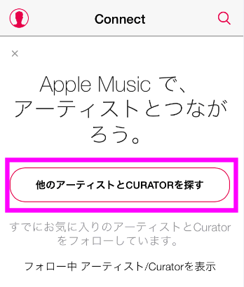 その他のアーティストを探すには、「他のアーティストとCURATORを探す」をタップします。