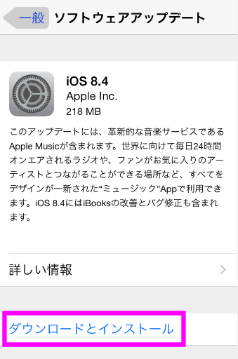 Apple Musicを使用するにはiOS8.4以降が必要です。以下では、iOS8.4のアップデートの方法を紹介します。