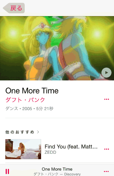 アルバムのDiscovery - ダフト・パンクを開くと再生ボタンがあるので、タップすると再生が始まります。