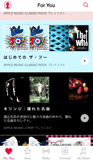 他の「Connect」や「Radio」や「For You」などは後で紹介します。