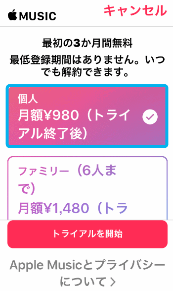 3ヶ月無料トライアルで3ヶ月間無料で音楽聴き放題です。
