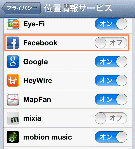 で、現在はFacebookでの位置情報はコメントを書き込むときに■色で囲まれたボタンをタップしないと送られないようになっています。
