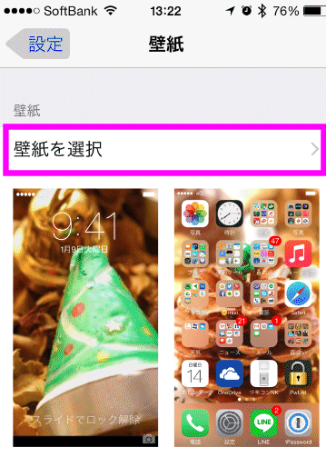 壁紙はロック中の画面と、ロック解除した時のホーム画面の2種類で別々に指定する事が出来ます。