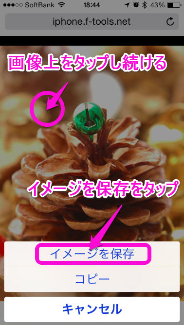 するとこのようなサブメニューが表示されるので「イメージを保存」をタップします。
