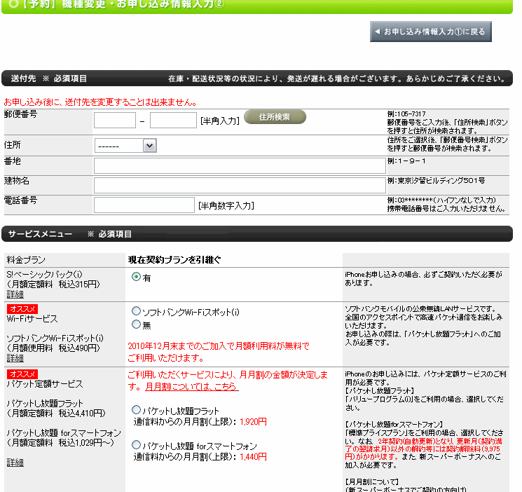 iPhoneは、大型電気店やソフマップショップで注文することが出来るんですけれど、オンラインショップの方がはやく届きそうだし(2010年9月現在でも予約して数日後でないと手に入らない)、いろいろな手続きもめんどくさかったので、オンラインショップで注文してみました。