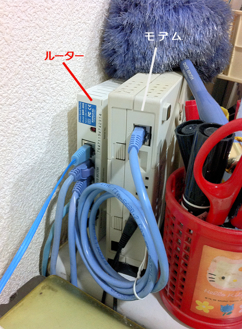 ルーターは、パソコンにつながれたLANケーブルをたどっていくと見つかるはずです。