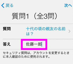 続いて「答え」の部分をタップし、質問の答を自分で入力します。