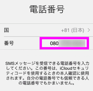 iCloudにログインするときなどに認証用のメールが届くように、電話番号を入力します。