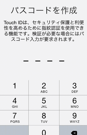 iPhoneをスリープ状態から復帰するときに入力する4桁のパスワード(パスコードといいます)を登録します。