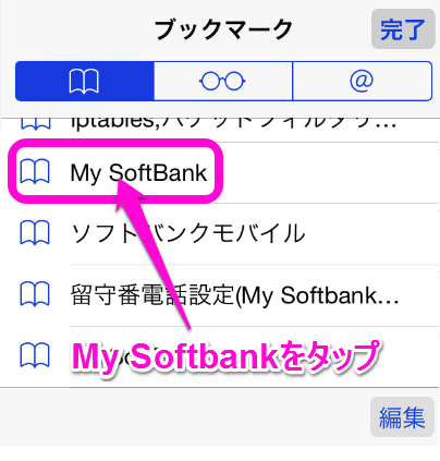 Safariを立ち上げ、画面下のブックマークをタップします。