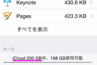 iCloudの容量が無料時の5GBから200GBまで増えました。