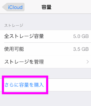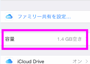 先ほどの画面の「容量」と書かれた右横の数値がiCloudの空き容量になります。