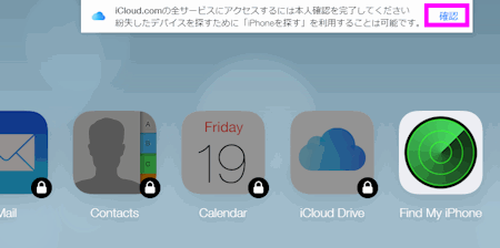 はじめてパソコンからアクセスするときは、本人確認が実行されるので「確認」をクリックします。