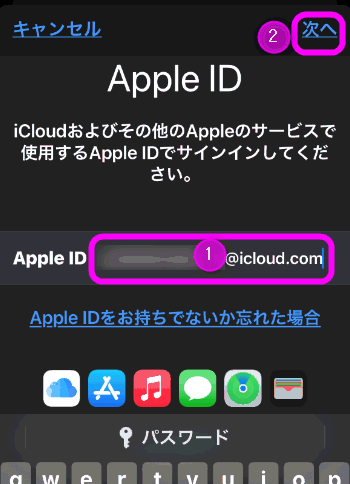 パスワードを忘れてしまった場合は、Apple IDのパスワードを忘れた場合の復元を参考にしてください。