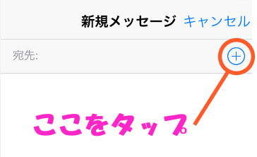 「連絡先」から選択することも出来ます。その場合は、まるで囲まれたプラスのアイコンをタップします。