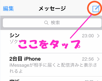 言葉で説明してもよくわからないかもしれないので、実際にiMessageを使ってみましょう。