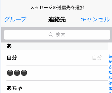 「連絡先」が表示されます。自分の連絡先かiPhoneを持っている相手をタップします。
