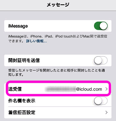 また、宛先の電話番号をメールアドレスにしたり、iPadでもiMessageを使うには以下のようにします。