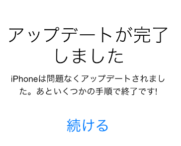 しばらく待っていると(ダウンロードを開始してから50分ぐらい)、このような画面になるので、「続ける」をタップします。