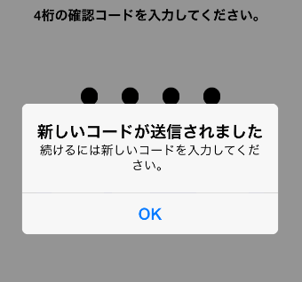 新しいコードが送信されました。となり、4桁の部分が入力された状態になりました。