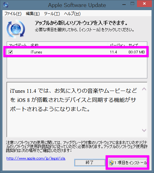 iTunesのアップグレード方法は、このページのiTunesのアップグレード方法を参考に。