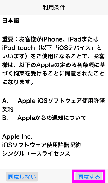 「利用条件」が表示されるので、右下の「同意する」をタップします。
