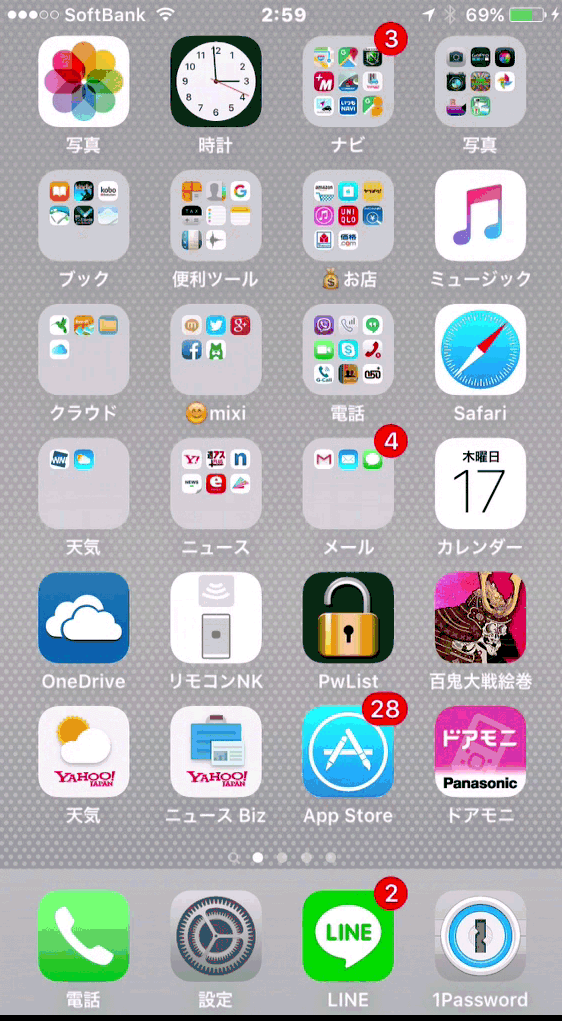 ちなみにこの「マルチタスク画面」も、iOS9で変更され、使いにくくなりました。(笑)