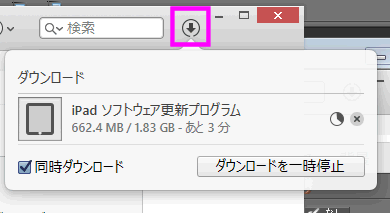 ダウンロードの進行状況は、右上の矢印をクリックすると表示されます。