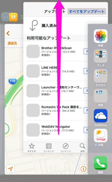 ホームボタンを素早く2回押して、「マルチタスク画面」を表示させます。