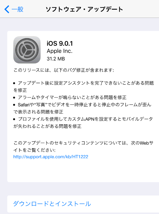 iOS9にアップデートしたら、フリーズして何も受け付けなくなった!というトラブルが続出しているようですが、さっそくそういったトラブルの修正版が公開されました。