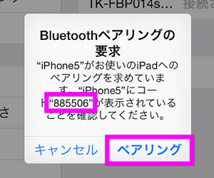 ペアリングの要求が表示されるので、「ペアリング」をタップします。