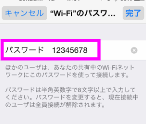 パスワードは、8文字以上の英数字であれば変更できます。覚えにくい場合は、ここをタップすれば変更できます。