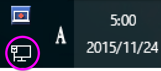 すると、タスクバーの右下に、このようなLANケーブル接続中のアイコン(丸で囲った部分)が表示されます。