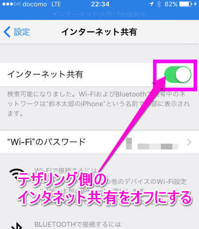 テザリングを解除するには、「インタネット共有」をオフにしてください。