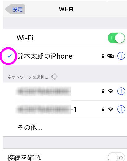iPhoneという名前のアクセスポイントがあれば、ここをタップします。