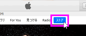 iTunesのメニューバーの一番右側にある「ストア」をクリックします。