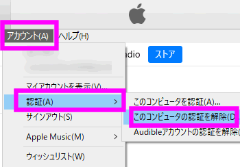 「このコンピュータの認証を解除」を選択します。