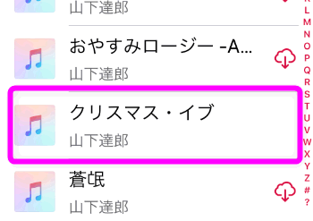 試しに、山下達郎さんの「クリスマス・イブ」をタップしてダウンロードしてみると、雲のアイコンが消え再生されました。